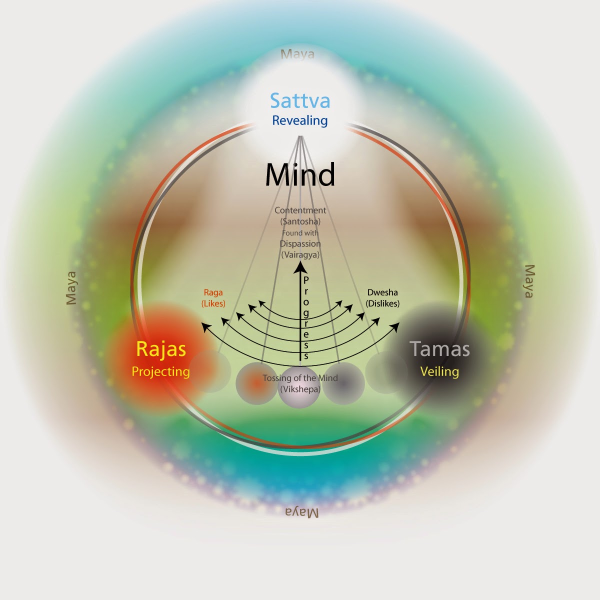 Nuestra mente puede desarrollar sus capacidades y virtudes superiores cuando prevalece en ella la cualidad sattva (es decir, cuando la mente es sáttvica). Por el contrario, cuando es rajásica y tamásica (es decir, prevalecen en ella las cualidades rajas y tamas) la mente funciona mal y causa sufrimiento psicológico y enfermedades energéticas, físicas y psicológicas.