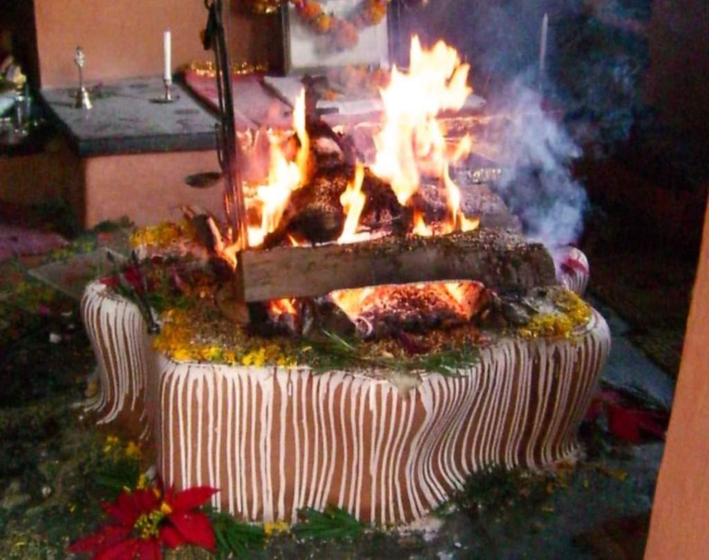 You may see many types of dhunis in the world, such as parsi dhunis, but nowhere else will you find an eight – sided dhuni. The eight sides symbolize the eight arms of Jagadamba, the Universal Mother. As long as there is creation, the dhuni will be there with living consciousness.