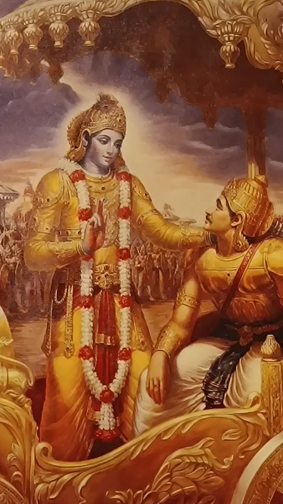 Εξήγηση: Ο Κρίσνα παρουσιάζεται ως πρότυπο ανιδιοτέλειας, διδάσκοντας ότι η κατανόηση αυτής της αρχής απελευθερώνει από το κάρμα.